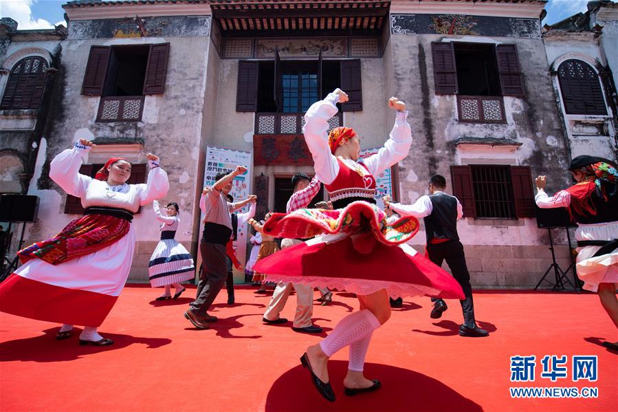 7月11日,演員在“慶祝澳門歷史城區(qū)申遺成功15周年嘉年華”上表演土風(fēng)舞。新華社記者張金加攝