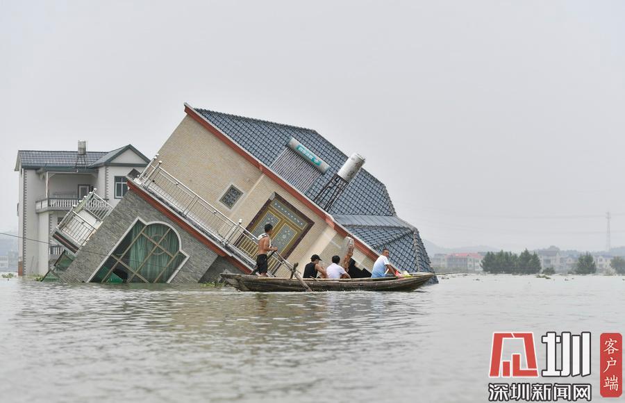 2020年7月15日,江西省鄱陽(yáng)縣油墩街鎮(zhèn)同興村,村莊受到洪水圍困,大部分村民已經(jīng)被轉(zhuǎn)移出去,仍有少數(shù)村民選擇留守家中積極自救繼續(xù)生活。7月8日晚,鄱陽(yáng)縣油墩街鎮(zhèn)西江因特大暴雨出現(xiàn)漫堤決口,5個(gè)行政村被洪水圍困,數(shù)萬(wàn)名群眾被及時(shí)疏散轉(zhuǎn)移。同興村村民張瑤康回憶起了當(dāng)時(shí)的場(chǎng)景,“水一下子就涌進(jìn)來(lái),等緩過神來(lái)趕緊向二樓轉(zhuǎn)移一樓的物品。洪水來(lái)時(shí)只從一樓搶到了一些輕便易拿的東西,冰箱、洗衣機(jī)之類的大物件,至今仍浸泡在一樓水中?!?5日,記者跟隨張瑤康乘船回家,抵達(dá)后看到,一樓淹沒在水中,一個(gè)綁在二樓護(hù)欄的木梯成為進(jìn)出“家門”的唯一通道?!懊刻靹澊ゴ謇镞\(yùn)送水和食物,家里有煤氣罐和灶臺(tái)。因?yàn)?0多歲的老母親行動(dòng)不便,我們選擇留守家中?!薄半m然對(duì)岸就有安置點(diǎn),但還是更愿待在自己家里,一來(lái)是不愿意給政府添麻煩,二來(lái)能每天看著自己的房子心里踏實(shí)?!蓖d村村民張長(zhǎng)來(lái)夫婦帶著剛剛領(lǐng)到的大米、方便面、飲用水乘船回到家中。記者在現(xiàn)場(chǎng)看到,隨著各方救援力量和物資的匯聚,被洪水圍困的村民生活雖有不便,但生活仍在繼續(xù)。“房子不倒,家就在,我們要積極面對(duì),早日重建家園?!睆埇幙蹈嬖V記者。
