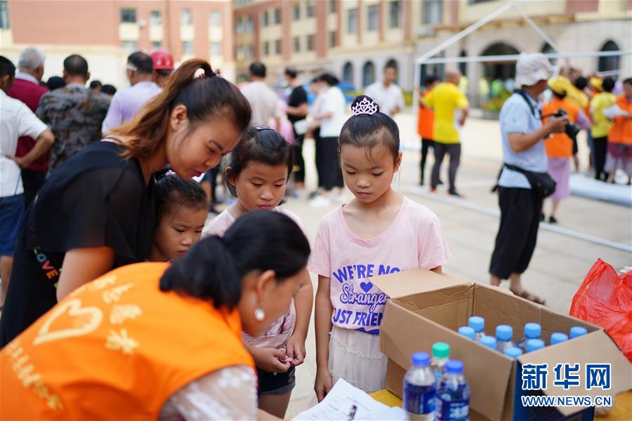 村民在江西鄱陽(yáng)縣五一中心學(xué)校安置點(diǎn)領(lǐng)取物資(7月9日攝)。新華社記者周密攝