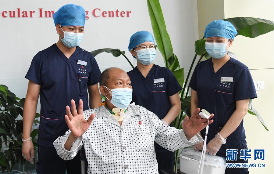 7月21日,準備出院的崔先生向大家致意。新華社記者程敏攝