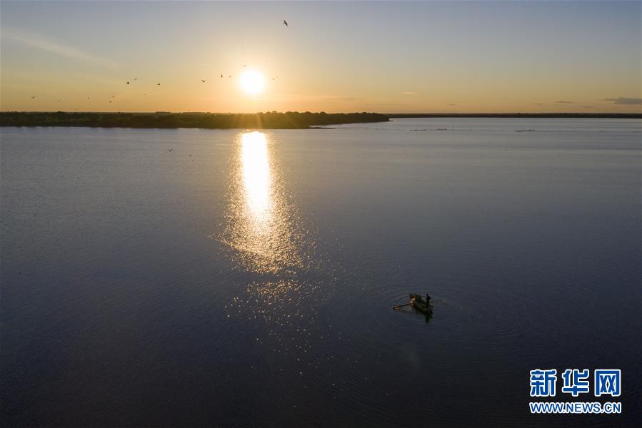 7月24日,漁民在大力加湖中捕魚(yú)(無(wú)人機(jī)照片)。大力加湖位于“中國(guó)東極”黑龍江省撫遠(yuǎn)市,面積28.5平方公里,兩岸地勢(shì)低平,多濕地、草原,湖內(nèi)水產(chǎn)豐富。夏日傍晚時(shí)分,漁民捕魚(yú)歸來(lái),美麗畫(huà)卷映入眼簾。新華社記者謝劍飛攝
