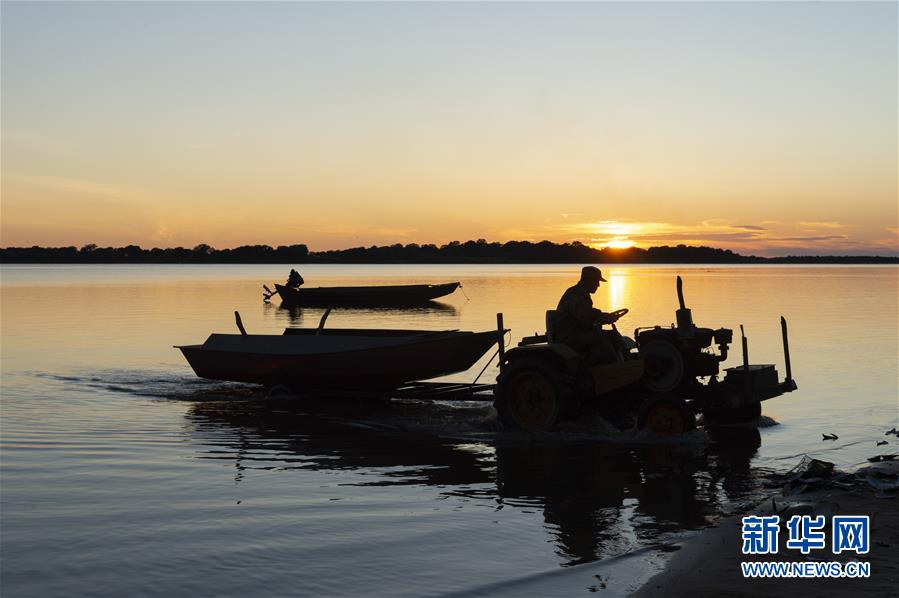 7月24日,漁民在大力加湖中捕魚歸來。大力加湖位于“中國東極”黑龍江省撫遠(yuǎn)市,面積28.5平方公里,兩岸地勢低平,多濕地、草原,湖內(nèi)水產(chǎn)豐富。夏日傍晚時分,漁民捕魚歸來,美麗畫卷映入眼簾。新華社記者謝劍飛攝