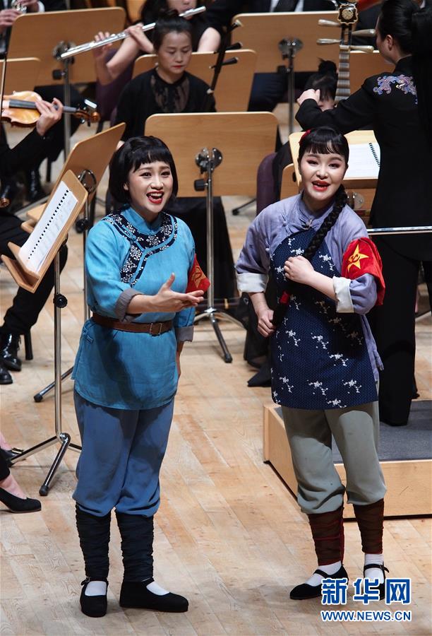 7月25日晚,演員在音樂會版歌劇《洪湖赤衛(wèi)隊》中表演。當(dāng)日,湖北省歌劇舞劇院攜湖北交響樂團亮相上海交響樂團音樂廳,為2020上海夏季音樂節(jié)獻上一臺音樂會版歌劇《洪湖赤衛(wèi)隊》。新華社記者 任瓏 攝