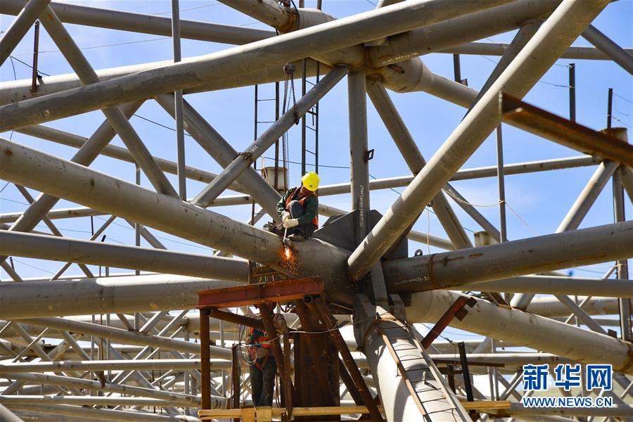 7月27日,工人在拉薩貢嘎國際機(jī)場T3航站樓的工地上作業(yè)。新華社記者 田金文 攝
