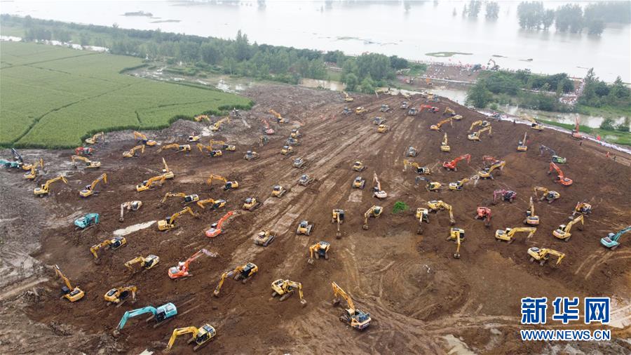 7月26日上午,位于安徽省潁上縣的姜唐湖蓄洪區(qū)戴家湖一處涵閘閘門破損,在大堤背后形成直徑約10米的漩渦,危及附近群眾的生命安全。險(xiǎn)情發(fā)生后,當(dāng)?shù)卣{(diào)配大量機(jī)械設(shè)備現(xiàn)場(chǎng)作業(yè),在大堤背水側(cè)修筑一道長(zhǎng)600米的臨時(shí)圩堤,控制險(xiǎn)情。