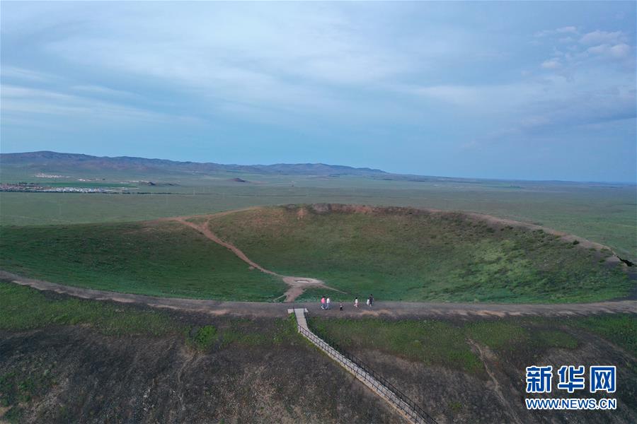 7月29日,游客在烏蘭哈達火山地質(zhì)公園游玩。新華社記者劉磊攝