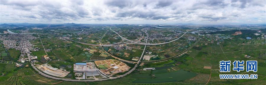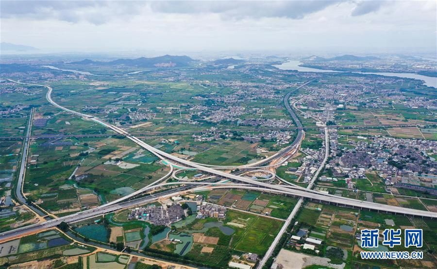這是已經(jīng)建設(shè)完成的潮汕環(huán)線高速公路上北互通立交,沈海高速公路從該互通立交下面穿過(無人機(jī)照片,7月31日攝)。新華社記者劉大偉攝
