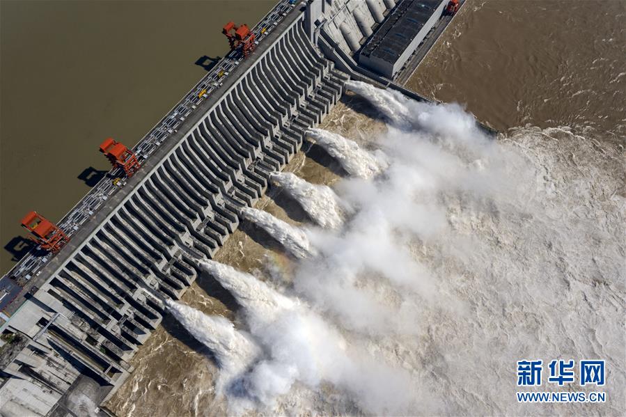 8月2日,江水通過三峽大壩下泄(無人機照片)。據(jù)水利部長江水利委員會消息,7月以來,長江流域共出現(xiàn)6次強降雨過程,長江上游先后發(fā)生3次編號洪水。為減輕中下游防洪壓力,包括三峽、葛洲壩在內(nèi)的長江中上游水庫群共攔洪300多億立方米。新華社記者杜華舉攝