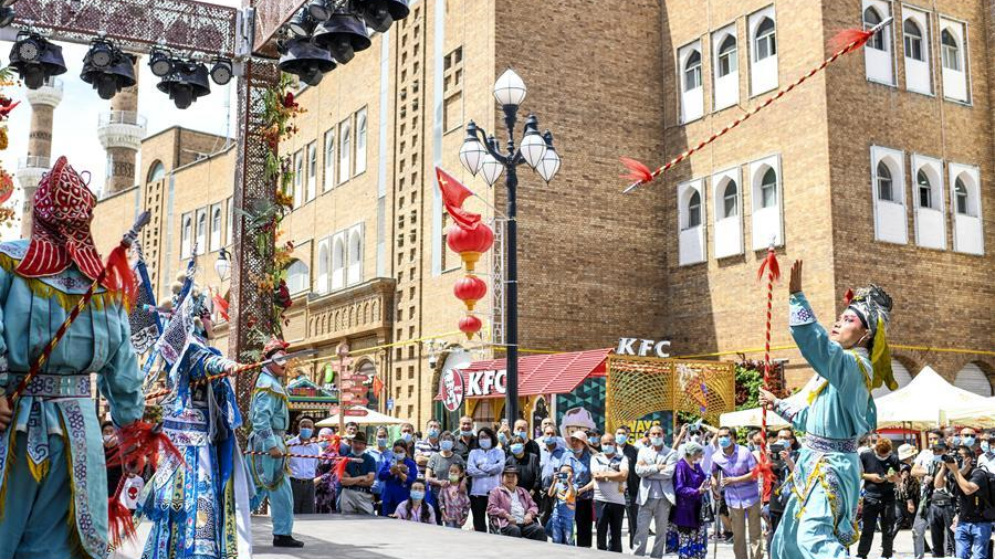 6月15日,游客在上海市愚園路上的一家酒吧享受夜晚休閑時光。