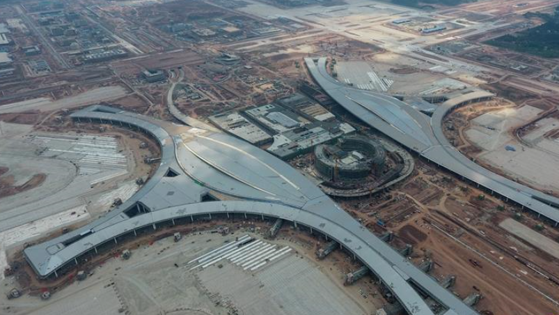 這是6月15日拍攝的成都天府國際機場建設(shè)現(xiàn)場(無人機照片)。