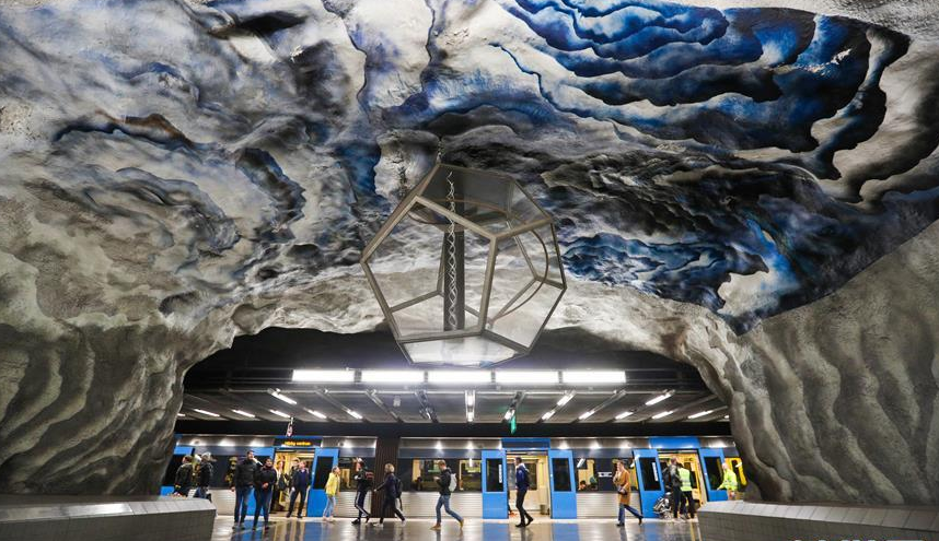 在瑞典首都斯德哥爾摩,每座地鐵站的站臺、墻壁及大廳的風(fēng)格設(shè)計都無一相同,各有特色。