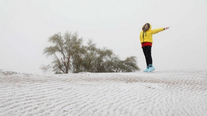 深秋時節(jié) 寧夏沙波頭迎來降雪