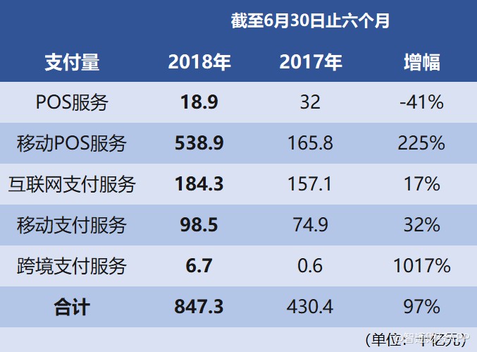 這個數(shù)據(jù),其實(shí)是比整個第三方支付行業(yè)的成長還要高出一半以上的——根據(jù)Frost & Sullivan統(tǒng)計的行業(yè)數(shù)據(jù),截至2018年底,中國第三方支付行業(yè)的支付交易總量預(yù)計將達(dá)到人民幣225.3萬億元,較2017年上升47%。