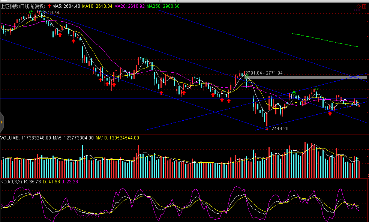 操作建議:短期維持弱勢(shì)、窄幅震蕩。股指大概率維持區(qū)間運(yùn)行(滬綜指2575-2604---2640點(diǎn)、創(chuàng)業(yè)板1300--1326--1359點(diǎn)),在未出現(xiàn)領(lǐng)漲熱點(diǎn)前,暫以輕倉(cāng)觀望為宜。