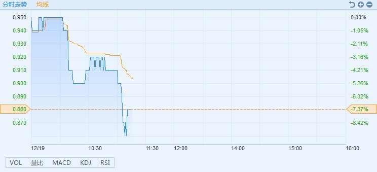 智通財(cái)經(jīng)APP獲悉,希望教育(01765)盤(pán)中一度跌至0.86港元,再創(chuàng)上市新低,月內(nèi)跌幅超三成。截至11時(shí)14分,跌7.37%,報(bào)價(jià)0.88港元,成交額2003.78萬(wàn)。