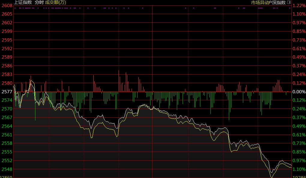 云財(cái)經(jīng)訊,指數(shù)今日小幅高開,地產(chǎn)板塊早盤沖高帶領(lǐng)指數(shù)上行,但隨后兩市快速跳水翻綠。午后指數(shù)繼續(xù)下行,多頭毫無抵抗,ST板塊、創(chuàng)投概念雖然輪番拉升但難掩大盤頹勢(shì)。盤面上,個(gè)股普跌,漲停25家,跌停5家。板塊方面,公共交通、房地產(chǎn)、西安自貿(mào)區(qū)等板塊逆勢(shì)上漲,石油開采、豬肉、醫(yī)藥等板塊跌幅居前。截止收盤,滬指跌1.05%,報(bào)2549點(diǎn);深成指跌1.48%,報(bào)7418點(diǎn);創(chuàng)業(yè)板指跌1.90%,報(bào)1268點(diǎn)。兩市成交較前一交易日縮量。(云財(cái)經(jīng)