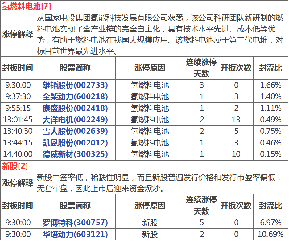 漲停分析:氫燃料電池活躍煤炭股逆市走強(qiáng)(1月14日)