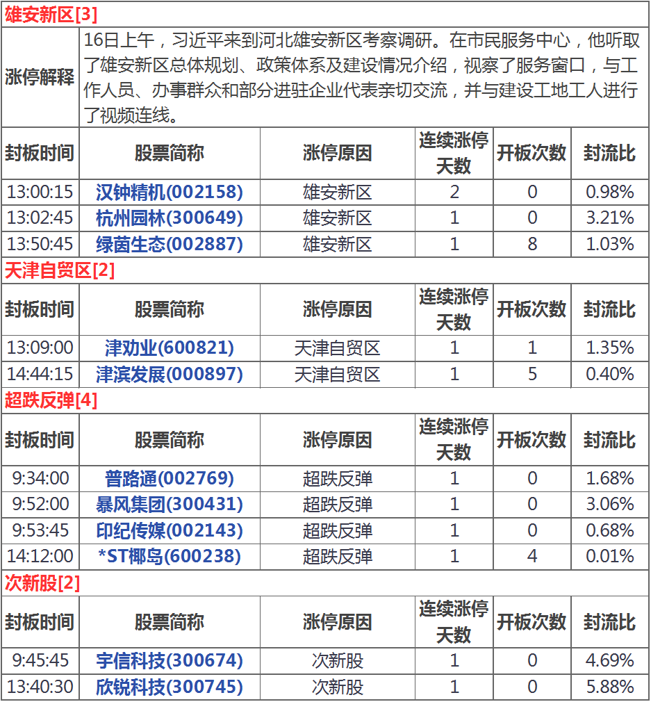 漲停分析:指數全天窄幅震蕩雄安、煤炭板塊午后崛起