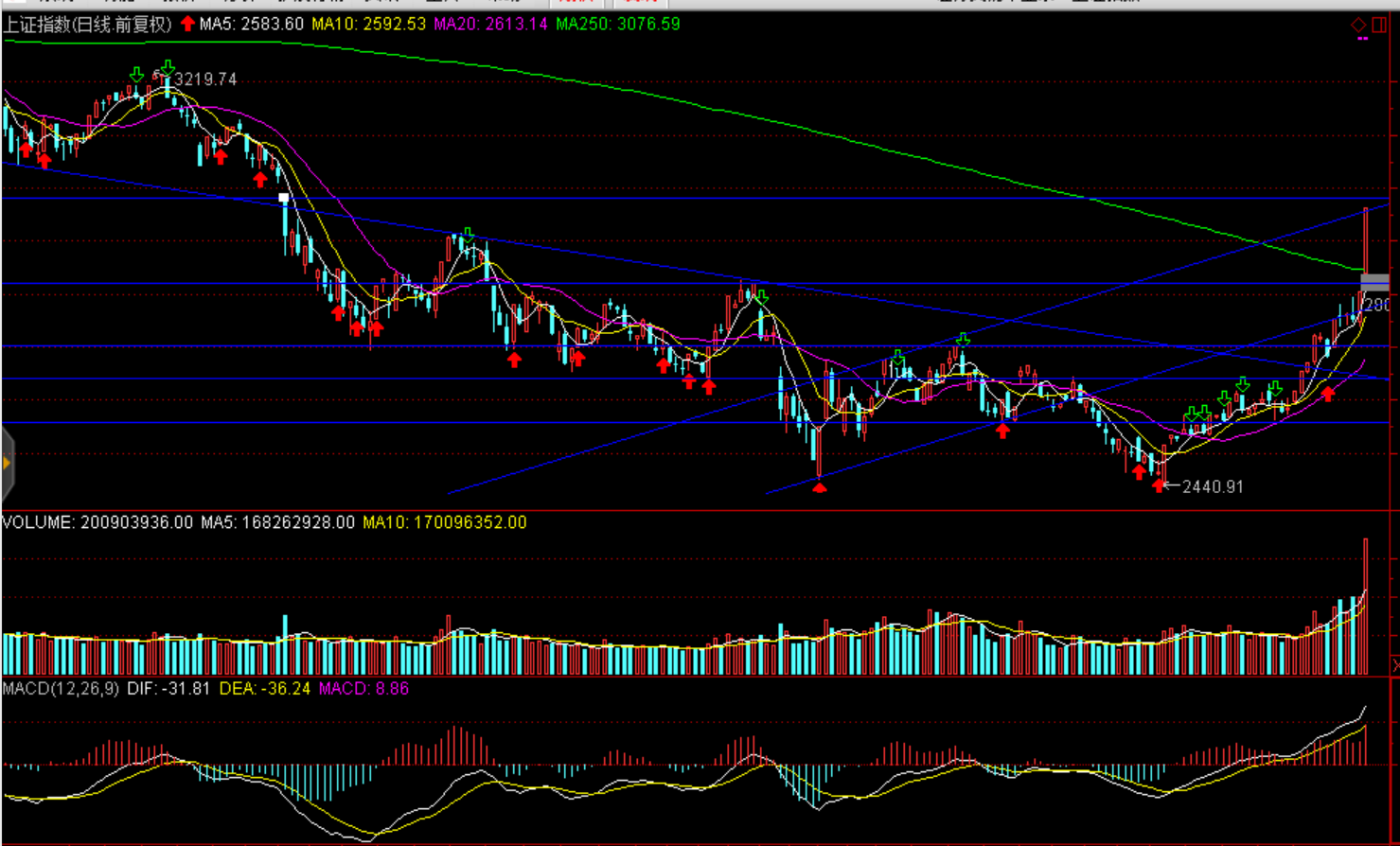 周一兩市大幅放量、強勢上揚,三大股指均以大陽報收。上證綜指收漲5.6%報2961.28點,創(chuàng)2015年7月以來最大日漲幅、深證成指漲5.59%報9134.58點、創(chuàng)業(yè)板指漲5.5%報1536.37點、上證50漲6.28%。兩市巨量成交1.04萬億元,環(huán)比大幅增加4182億元,刷新2015年11月以來新高;北上資金結(jié)束連續(xù)18日凈流入,凈流出7億元;盤面看券商、保險、銀行、5G通信、國產(chǎn)軟件、金融科技板及創(chuàng)投塊漲幅居前。整體看市場受到中美貿(mào)易磋商達成共識、金融供給側(cè)改革內(nèi)外利好因素影響,場外資金加速進場,市場進入階段性亢奮。