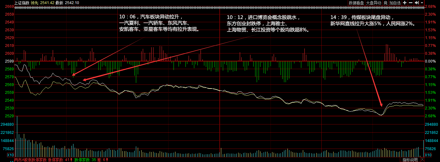今天漲停家數(shù)較上一交易日有所減少,兩市41家漲停;跌停35家。成交量方面,兩市總成交額約為2554元,較上一交易日縮量272億元。盤(pán)面上,板塊多數(shù)收綠,白酒、旅游、煤炭、自由貿(mào)易港等板塊跌幅居前。