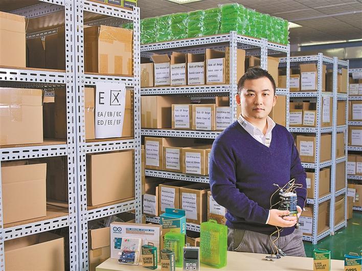 我在大學甚至更早的時候就深有體會——我有很多想法,但是缺乏必要的技術(shù)去把這個想法實現(xiàn)出來。我在國外的一個開源硬件論壇留言說我的體會,沒想到有那么多創(chuàng)客回饋說有同感,論壇上創(chuàng)客們的積極回應讓我看到了商機。我發(fā)現(xiàn),很多硬件模塊因為創(chuàng)客需要的量少,很多工廠不愿意生產(chǎn)。后來,我想到了在國際創(chuàng)客論壇發(fā)帖征集創(chuàng)客們的需求,再到國內(nèi)電子市場搜集硬件加工后發(fā)給創(chuàng)客的點子。于是,我便做起了開源硬件的生意?!盀閯?chuàng)客服務”,這是我創(chuàng)業(yè)的最初目標。
