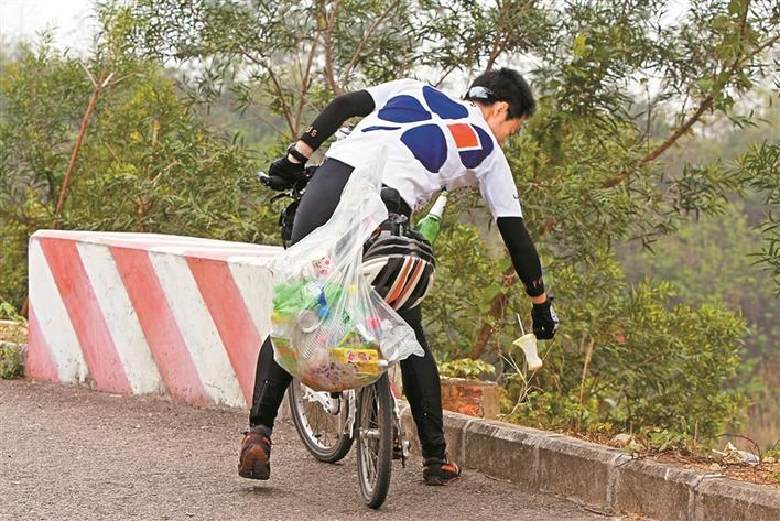▲2009年,志愿者在百公里活動沿線撿垃圾。