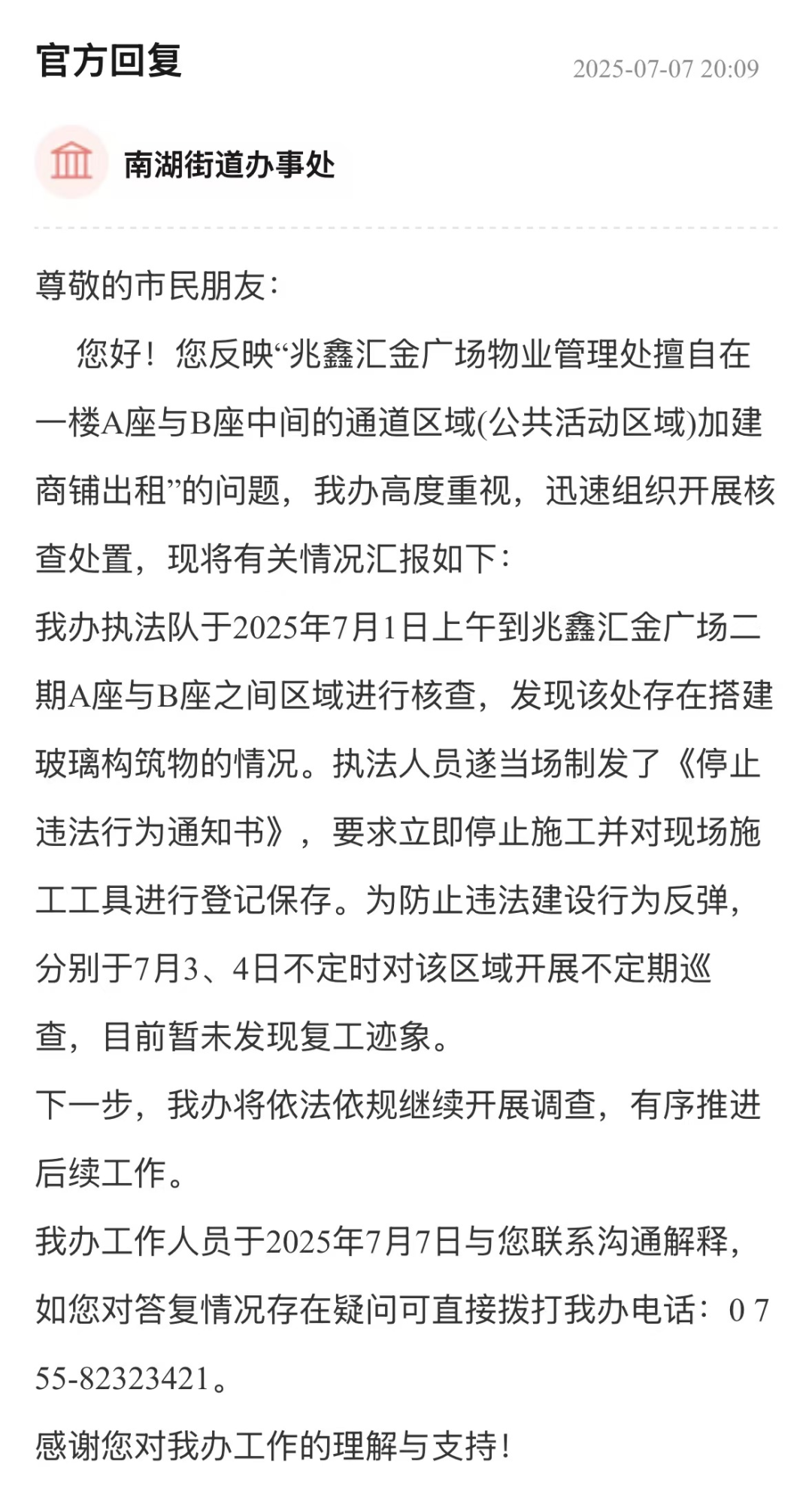 從市民反饋到執(zhí)法處置,羅湖區(qū)南湖街道辦事處以快速響應(yīng)、精準(zhǔn)執(zhí)法展現(xiàn)治理效能。通過現(xiàn)場核查、制發(fā)《停止違法行為通知書》、登記保存施工工具等措施,及時(shí)遏制違法搭建勢頭,并建立不定期巡查機(jī)制防止反彈。從“即時(shí)制止”到“長效監(jiān)督”的閉環(huán)管理,維護(hù)了業(yè)主合法權(quán)益與消防通道安全,為城市違建治理提供了高效務(wù)實(shí)的實(shí)踐樣本,彰顯基層執(zhí)法部門守護(hù)民生安全的責(zé)任擔(dān)當(dāng)。