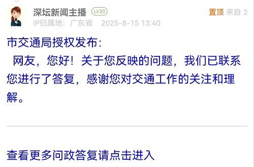 各職能單位如需對(duì)網(wǎng)友反映的問(wèn)題進(jìn)行回應(yīng),可在深圳論壇注冊(cè)官方賬號(hào)并通過(guò)認(rèn)證,回帖進(jìn)行回應(yīng)。